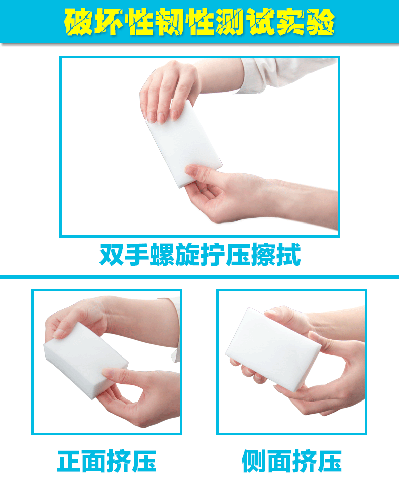 使用該產(chǎn)品只需用水,不需清潔劑,去污能力強,采用物理去污的機理,依靠海綿內(nèi)的納米毛細管開孔結(jié)構(gòu),在抹拭過程自動吸附物體表面的污漬,完全不依賴任何化學(xué)洗滌劑去幫助降解,具省時,省力,省錢,便利,環(huán)保,健康等特點。